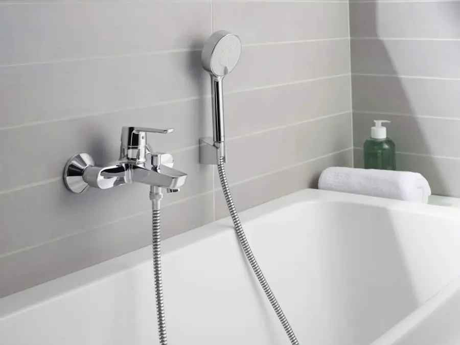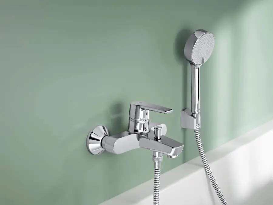 The HANSA POLO bath and shower faucet is designed for wall-mounted installation, with a chrome surface treatment that ensures durability. It features hot/cold symbols for intuitive control. The pull-operated diverter with automatic reset offers seamless transition between bath and shower modes. Crafted with a body of high quality DZR brass, this faucet promises longevity and resistance to corrosion, ensuring reliable performance in high-demand environments. The faucet is ideal for everyone looking a blend of functionality and modern design.